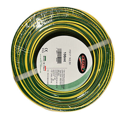 100mt Cavo Elettrico FS17 450/750V Unipolare 1X2.5mm Colore Giallo Verde Made
