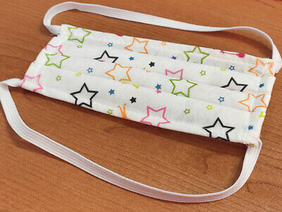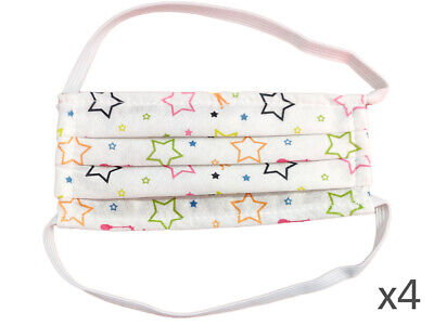 4 Mascherine Per Bambini Disegno Stella Colore Bianco Made in Italy Tessuto TNT