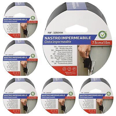 6 Pezzi Nastro Adesivo Impermabile PVC 75mm X 150cm Nero <ul><li>Il nostro