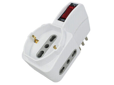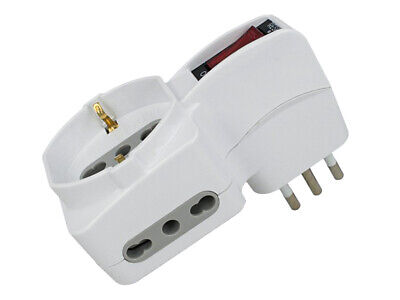 Adattatore Triplo Con Interruttore Spina 10A 2 Prese 10/16A Bipasso + 1 Presa