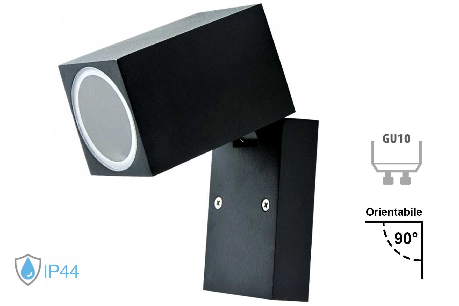 Applique Lampada Da Parete Quadrato Orientabile Attacco GU10 IP44 Carcassa Nera