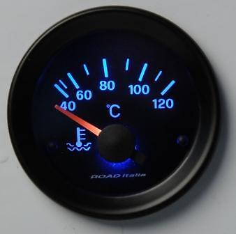 Manometro Strumento Road Retroilluminato Temperatura Acqua °C c/SONDA Blu